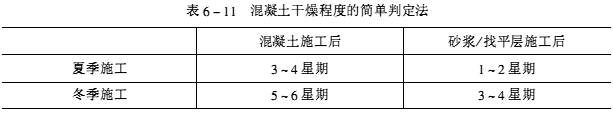 (2)基层面的干燥程度 因混凝土和砂浆找平面施工过程中含有大量水分,待地面涂料施工时必须干燥到所要求的程度。现场可以以基层施工后的养护时间来简单判定:表面是否发白或测含水率。(必须基于基层已做防潮、防水层处理)