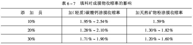 ![]() (3)填料添加量对涂膜线收缩率的影响。对环氧耐磨地面涂料而言,其最大的优势就在于可做到一次施工面积大,整体无缝,这就对涂膜线性收缩率有较高要求,填料对涂膜线收缩率的实验数据见表6-7。