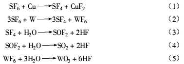 在气体绝缘开关中,常用SF6作为消弧媒体和绝缘媒体,SF6在通常情况下是稳定的气体,但在断路时由于电极触点间发生的电弧作用,会分解出具有活性的SF4等气体。SF4在有微量水分存在下,会发生水解而生成SOF2、HF等。