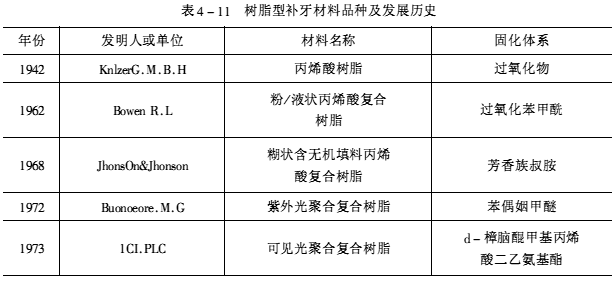 树脂型补牙材料及其历史发展见表4-11。