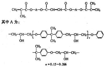 复合树脂主要由顺丁烯二酸酐改性的甲基丙烯酸环氧酯及二甲基丙烯酸二缩三乙二醇酯组成。它们的结构如下: