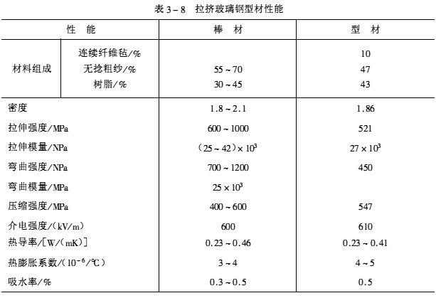 拉挤玻璃钢制品的物理力学性能参见表3-8。