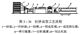 ![]() 拉挤成型工艺的缺点是产品形状单调,只能生产线形型材,而且横向强度不高。