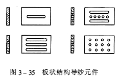 要求预成型模中的导纱元件能导纱,能导毡或能导纱同时又能导毡。导纱元件的结构形式可根据拉挤产品断面形状进行设计。板状结构导纱元件如图3-35所示。