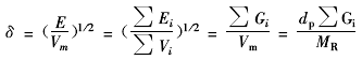 ΣGi——聚合物结构重复单位中,&种基团对摩尔相互吸引常数单独贡献加和,J0.5·cm1.5;有时采用F或(E·Vm)1/2表示摩尔相互吸引常数;