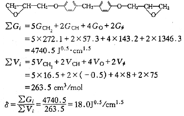 ΣEi——聚合物重复单位中,i种基团对内聚能单独贡献的加和,J/mol;